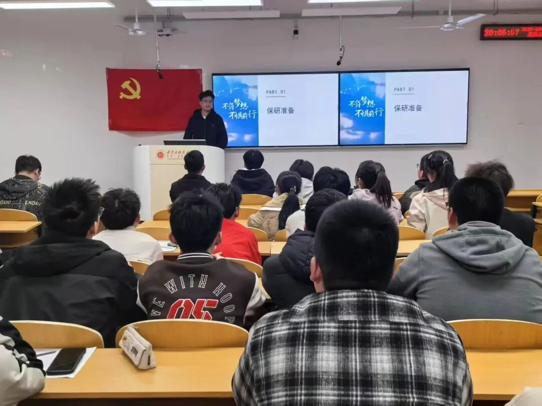 党员领航当“灯塔”,为保研路点亮奋进之光。教室里,分享者倾囊相授保研心得,从规划到备考层层拆解;聆听者眼神专注、笔尖不停,在“传帮带”的温暖氛围里,支部把学业奋进的力量传递给每一个逐梦的身影。