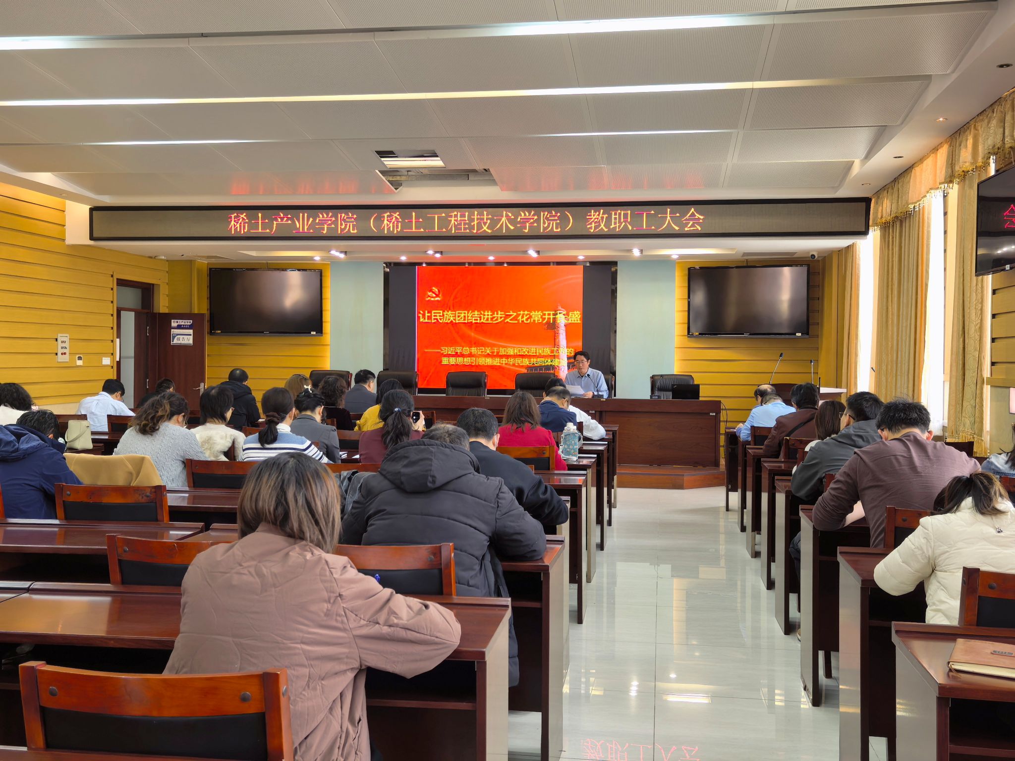 2026年3月12日下午2:30,德州扑克在线练习 在A405开展教职工政治理论学习-让民族团结进步之花常开长盛,认真学习领会习近平总书记关于加强和改进民族工作的重要思想,铸牢中华民族共同体意识。会议由德州扑克在线练习 党委副书记组织领学,德州扑克在线练习 全体教职工参加。