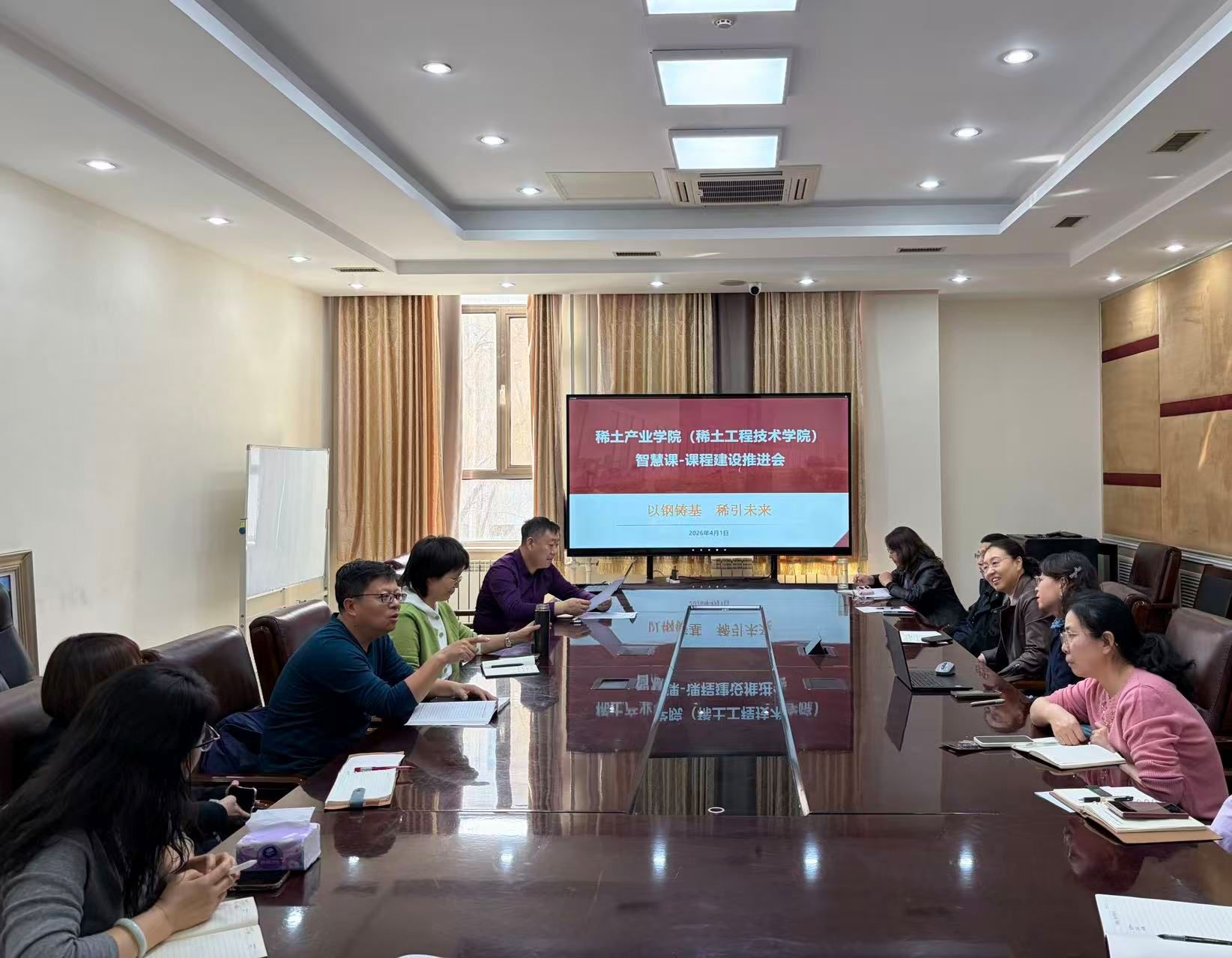 已有6门课程获批校级智慧课程建设项目,包括冶金原理、有色冶金工艺学、稀土元素化学、材料科学基础、冶金工程设计(钢铁)、冶金工程基础实验,另有7门专业课程已完成平台搭建及资料完善。教师通过引入虚拟仿真实验、课后互动课堂、智能评测系统等信息化手段,有效提升了教学效果与学生学习体验;与会教师还就智慧课程建设中遇到的技术难题、资源整合及评价机制等问题进行了交流。