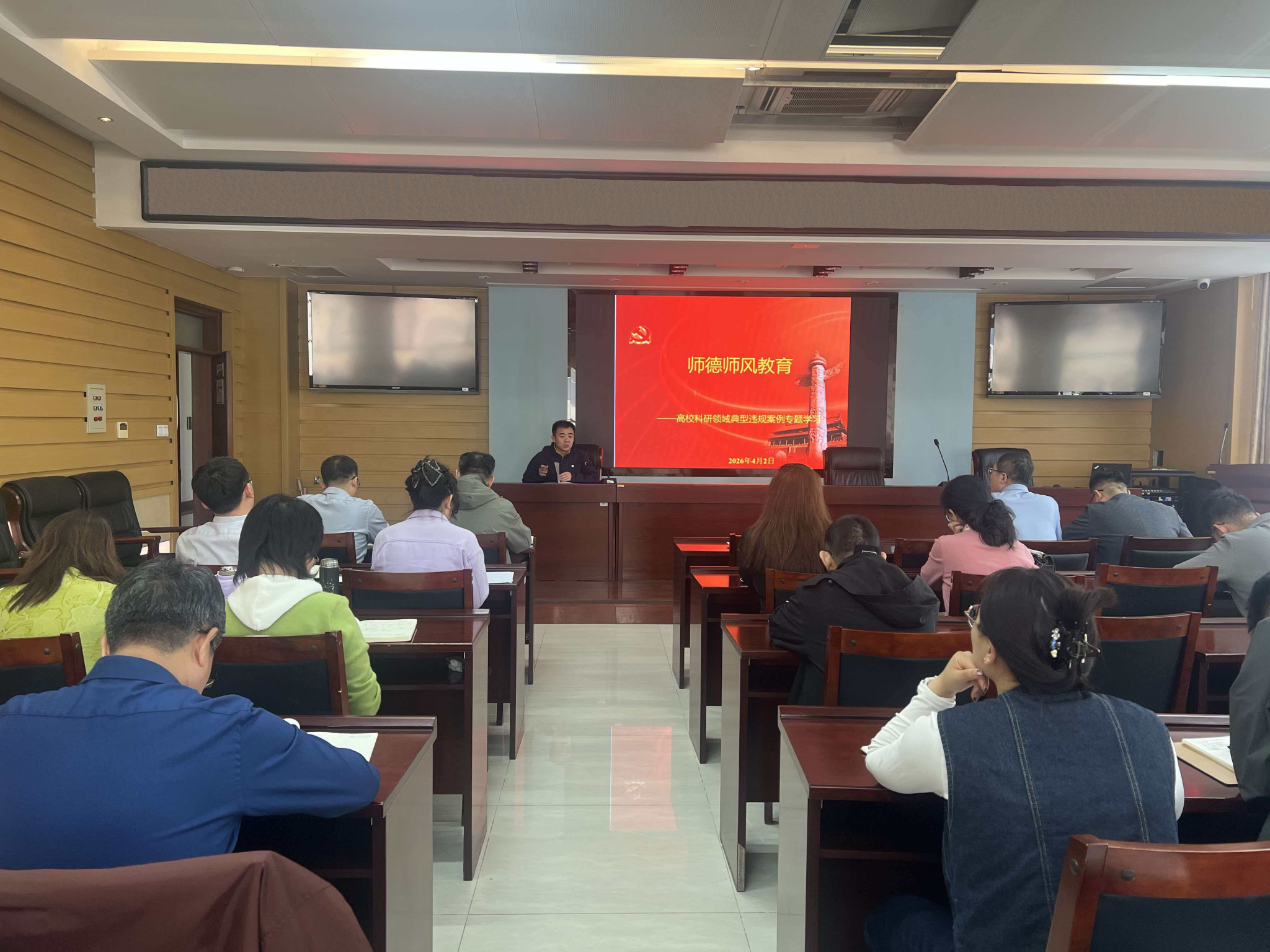 为进一步加强师德师风建设,严守科研诚信底线,规范教师学术行为。2026年4月2日下午,德州扑克在线练习 组织全体教师开展师德师风专题学习。